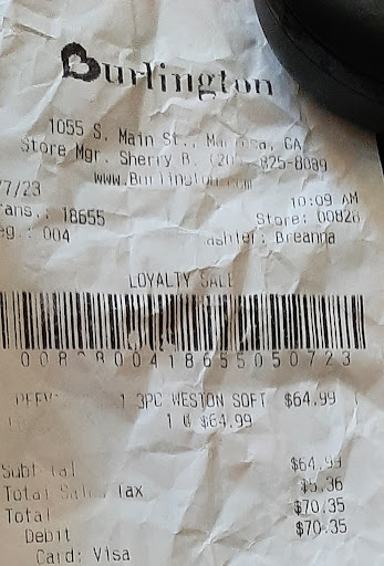 Read moreWe recently moved to Manteca, its been about 3 wks, so we're still in the unpacking stage. I had to make a Walmart run. After Walmart I decided to pop into Burlington maybe find a mattress pad and a couple of odds and ends.
