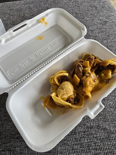 Edited to respond to the owners dismissal of customer complaints. I took the jalapeƱo peppers of because I didn't want them. They were an extra item on the menu to select if wanted and I did not select. Your own menu states a Frito boat is chips, chili, and cheese. So yes, I did have the unwanted after taste of the peppers on the boat. And, that is exactly the tray of food your employee handed me. It did shift in the bag provided. When I originally opened at the store, there was a small layer that covered the entire bottom of the tray. Here is the photo I took before leaving your parking lot. I have received your message you no longer want me as a customer. No worries, I won't return. Maybe go back to the ice cream cone stand. That was when you had a good product and good...