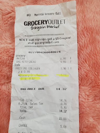 Read moreClean,big,good deal but the cashier made my experience not wanting me to go back. I was happy I had food stamps and she asked me if I wanted to buy bags ,my daughter told her don't you get bags with the stamps and she said well are these yours or hers my daughter said I am just helping her put her grocery on the counter it should have not been a big deal, I didn't feel happy any more I guess I am going to stick with the store in stockton I don't want to go home feeling ashame that I got food stamps. The cashier in stockton don't try to shove and over fill the bag so that they rip trying to get the into the car and I had to pull out my my own bag from my walker so she wouldn't have to use the store bags sorry I won't be...