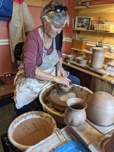 Read moreWanchese Pottery is a cute hole-in-the-wall shop owned by a lovely couple. We were lucky enough to visit on a day that the artist was in the store, and she let us watch her spin a few pots. The owners are extremely sociable and happy to tell you about their profession. They had a busy summer so there weren't many pots to choose from (which is technically a good thing), however they had plenty other items. Not only can you get pots, they also have handmade brush/chopstick rests, magnets, crosses, locally made art, among other things. They also have some used books on the shelves that customers are encouraged to take for free. Not pictured: the green frog named Frank that lives underneath the sign on the front...