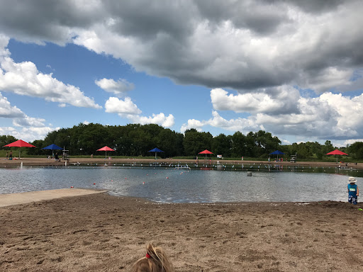 We love Elm Creek Swim Pond! We bought season passes, which were incredibly reasonable, and it’s been absolutely worth it. The sand-bottom pond is so fun, with a clearly roped-off shallow section where kids can play with floaties (up to 3 feet long, if I remember right) and a deeper section for stronger swimmers.