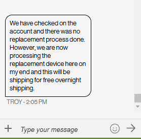 Left the shop only to get in my car and look at the email from Verizon about the appointment which was in fact for 430-5pm. Went back inside to show the guy this email and he then looked a little flustered and said well we don't have time today anyway, umm okay I have an appointment. But he then said the next best thing he could do was order a replacement to come to me on the following Monday. I actually liked this option better anyway so I was cool with it.