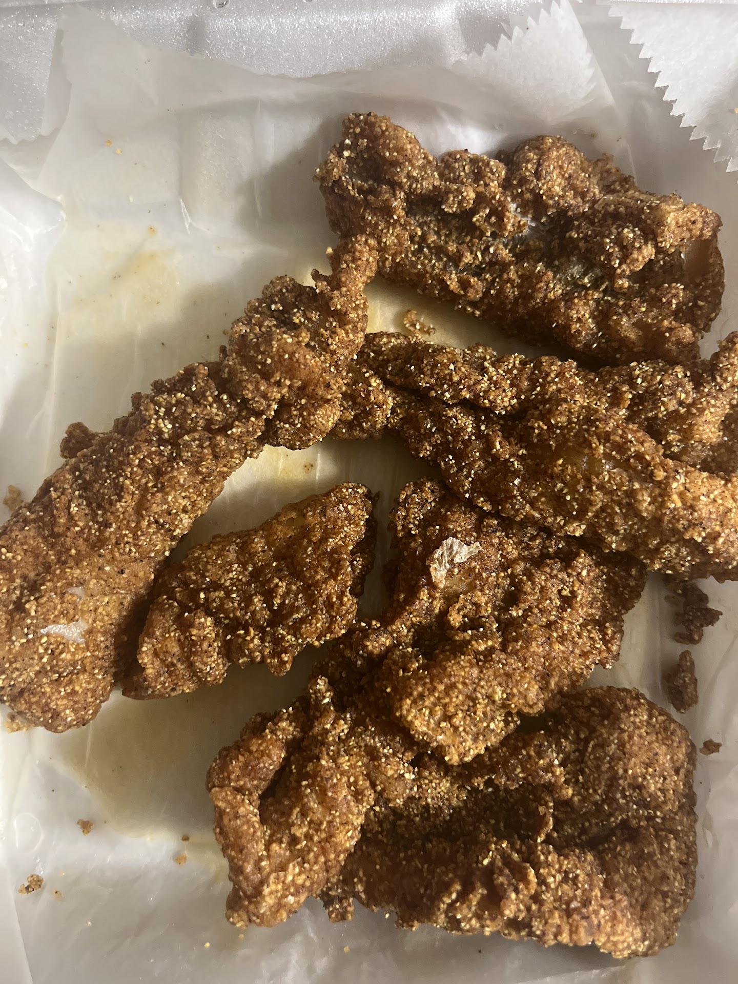 I've been coming here for years. Literally since childhood. Their service was awful last year and I didn't go back until recently. The service was amazing. The cashier's were so kind and professional. My friend got a shrimp dinner and perch dinner both with fries (she said the seafood was good but the fries were dry and bland). I ordered a Cajun seasoned catfish dinner with fries and lemon pound cake. The fish was very good. Fried hard and seasoned well. The fries were absolutely horrible. Fried so hard and had no seasoning. They were inedible. The bread was soaked with grease on the bottom. They used to put a sheet of parchment on top of the fish to prevent this. The pound cake was nicely flavored but just dry. I was disappointed because I've always had good meals here. I usually get the green beans and spaghetti for sides. I'll keep patronizing them...I just hope...