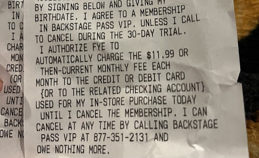 That being said, either shop there with cash or be extremely careful when shopping here. Do not give them personal information if you want to avoid the Backstage VIP Pass. The Backstage VIP Pass is practically a scam and pretty predatory to both the customers and the employees(I've heard reviews across the internet regarding a "loss of hours" depending on whether the employees push it or not). It's hoisted up as a "free*" loyalty program which makes it sound like Hot Topic's Hot Cash or GameStop's PowerUp rewards(both programs have absolutely free options and can give discounts based on money spent). Notice how I put the "free" in quotes with an asterisk, though. It's only free FOR ONE MONTH. After that, they charge you $11.99 per month for a 10% discount and additional benefits according to whatever is described on their website or pamphlet.