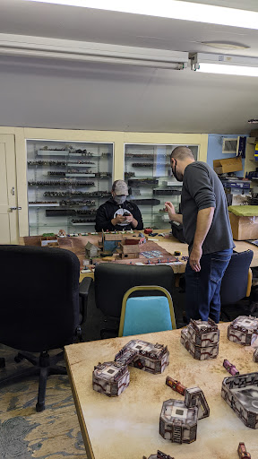 Read moreI attended storytime on Thursdays here for a while. I have never bought anything here besides water from the vending machine, but the shop appears to have many selections for painting and miscellaneous crafting things. The shop feels a little tight to navigate through when there are people playing with the landscape and figurines downstairs. Upstairs, the event space is not incredibly clean and does have broken chairs, but it is adequate for five tables of storytime Dungeons and Dragons. The single bathroom does not feel very clean and funnily always has a lot of paint and brushes inside. Overall, it is a little rundown and can get crowded, but the people are friendly and I understand that there are many things to do or buy. Parking can...