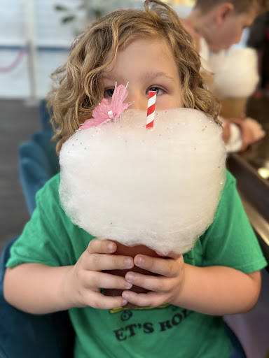 This place is a dream!!! My two boys ( 7 and 10) and I were mesmerized by this place! You feel as if you are transported to Willy Wonkas chocolate factory/ 1940’s soda shop/Beach Boardwalk cafe. Sitting in velvet seats or soda shop stools , listening to boardwalk style music gently float through the shop from the double decker carousel delighting riders behind you, sipping on huckleberry lemonade and eating the fluffiest , lightest mist true to flavor cotton candy you can conceive of! All organic came sugar, no dyes, SO REASONABLE in price, variety that boggles the mind and to top it off, the sugar slinger/ cotton candy master is the friendliest , most fun guy making everything feel magical to a tee! He was incredible and made our day. I can not recommend this place highly enough! What a special time out with my boys. We...