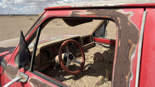 Somewhere in the sun-scorched expanse of Marfa, Texas, where the desert swallows secrets whole, an eerie art installation sits—half-forgotten, half-remembered, like a dream that slips through your fingers upon waking. A rusted red pickup, stripped of its purpose, now serves as a sanctuary for cacti and dust, its steering wheel still clinging to the memory of hands long gone.