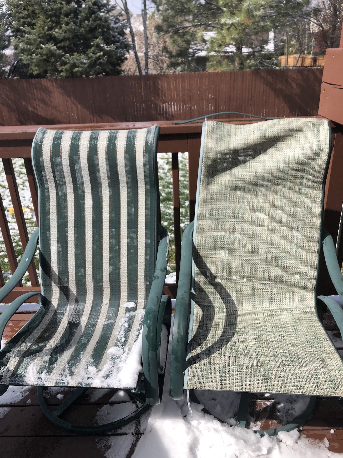 I was originally skeptical of ordering new slings for my chairs so after I ordered the samples and choose my favorite, I ordered one sling. The sling was much more difficult to install than the videos that I watched suggested, but I was still very happy with the outcome! It took my husband multiple days to do the entire set once we ordered 4 more slings because it was so difficult. We also had to use Vaseline to get the slings to move. This could have been due to the age of the set or the curve in the design. It was a much better option to order new slings than replace my entire patio set. These slings make my patio set look brand new! I also didn’t know the make or model of my patio set prior to ordering. So I sent a picture to the company and like the patio set geniuses that they are, they knew exactly what I should order! Very happy with the company and the product! Before on the left and new one on the right(don’t mind the wrinkle in the top of the new one. We weren’t 100% done putting...