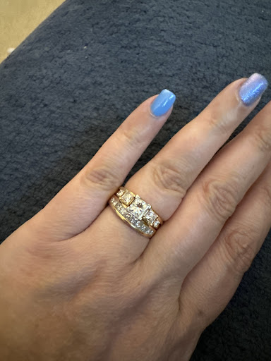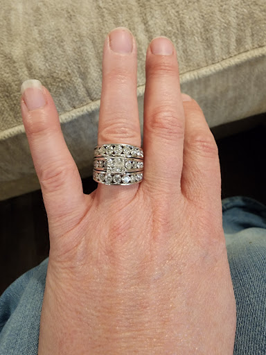 My husband bought me an engagement ring and 2 wedding bands (and some other things) from this store. My set is gorgeous. I can't go anywhere without compliments. I had to have my set resized. Although it did take 3 tries to get it done correctly, I was glad to have my Wedding ring back. It had 2 broken diamonds when I sent it off and the guy said he couldn't see anything wrong with it...it was quite obvious. (I haven't seen him in there since, so hopefully he doesn't work there anymore.) The nice lady with blonde hair took over and did say she saw the problem. She had it sent off for sizing and repair. It came back with 1 diamond replaced and one not and the set was completely misaligned. I was so sad. I showed it to the same blonde lady, clearly upset and she acknowledged my issue and promised to send it to a different repair place and promised it would be fixed correctly. She put a priority sticker on it and when it returned it looked amazing! I just took it back for inspection 2 months ago when it was due and I talked to the same sweet blonde lady and showed her that the 2nd broken diamond was never replaced. I told her that after it came back the 3rd time I was just done and didn't want to send it off again. She remembered me and my frustration and assured me she would get it back right. Again, a priority sticker was placed on it, and although it took 7 weeks, I have my baby back. My ring looks better than brand new. I am so amazed that it looks as good or better than it did when it was brand new. I was disappointed during the whole thing, after my husband had spent so much $ and it wasn't right. She assured me that she would make sure it was done correctly. I wish I knew her name. She is fabulous. Although it is a mixed review kind of, in the end, I'm happy to have my...