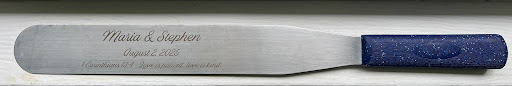 I highly recommend this company for any engraving needs! This cake knife was very special to my fiancĂ©, and I, as we both worked at the same company and used this to cut cakes. I had the idea of engraving this for months, but was unsure due to the size of it and whether any company would have a machine big enough. I reached out to this company a week before my wedding to see if they would be able to engrave this for me and have it ready before the wedding and they had it ready three days prior! Because it was for my wedding, they waived the rush fee, which was so extremely appreciated. To engrave this knife, I believe it was $35, how can you beat that? As I was at the store, they typed in all of my information and made sure that the writing to go on the knife was spelled correctly, they even sent mock up as well. This knife was a surprise to my husband the day of our wedding and it was so worth it. The knife itself was so special but then having the engraving?? It was beautiful. âLove is patient, love is kindâ was on of our readings and I loved the idea of having that engraved on the knife too!! Thank you Engraveables in...