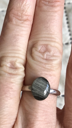 Stunning Emerald Green to represent Mommas eyes 💚 I also received a necklace to match and a second ring with Green and Blue flakes for representation of both our eye colors. 🩵