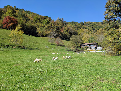 Super relaxing farm cottage experience in the Blue Ridge Mountains! About a half hour drive north of Asheville. We stayed in the larger 2b 2ba East Fork cottage and loved it. Would be nice for families. The other 2 cabins looked great too. Ours has a secluded side patio with seating, bbq, fire ring and a big hot tub overlooking the sheep meadow. There was a well stocked kitchen (incl oil, spices, coffee, sugar) and comfy beds. Farm fresh eggs and meat available for sale at the farm store. Best bone-in pork chops I've ever had. Guests can explore on their own or ask for a farm tour. Expect a visit from the...