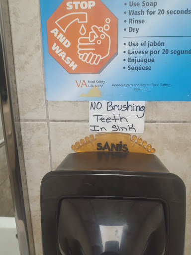 Read moreStopped in here for the night as we travel the roads in a tractor trailer. There's a decent amount of truck parking in the back. There's a lot of dropped trailers, though, but that's a good thing, I guess, if they allow you to in order for you to run someone fast. Now, with that being said, the food is ok, but what blows my mind is the NO BRUSHING TEETH IN THE BATHROOM SINK! You have a truck stop parking lot, so where do you expect truckers to brush their teeth? I'd really like to know the reason behind...