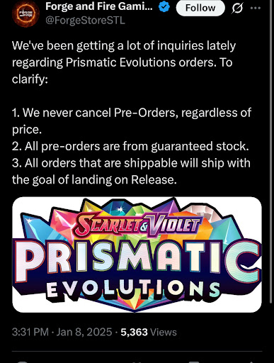 Read moreDo not buy from this company. Back in January when they did not have any limit on Destined Rivals and $160 per Booster Box was considered quite a bit I purchased five cases from them. I’ve been looking forward to this set releasing for over a year. They held my money for five months and then four days before release they canceled every single one of my orders. They then decided to relist 2400 boxes for an increased rate. After trying to email them, message them on Facebook and contact them on Instagram, I finally got a hold of someone at the store. The first person I spoke to,Amber, was a lovely person and wish her nothing but the best. Three days later, I spoke to a manager and they told me that the owner said they would give me one case and one case only. I told them I would accept this resolution as long as they refunded me the market rate for the boxes, but they would not do this. It is very obvious that they decided to be greedy and refund all my boxes that I had purchased before the hobby exploded for $160 just so they could resell them for additional cash. The manager, I was speaking to basically literally had nothing to say other than I just have to to do what my boss tells me to do. Clearly the owner of this business does not follow his own word of never canceling pre-orders under any circumstance. Also on top of that They are holding $1600 of that as a...