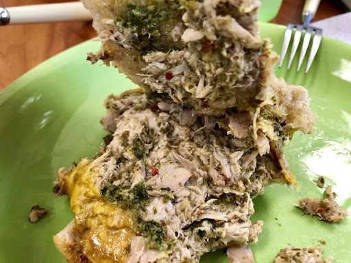 Ahi Melt I'm always thinking of my next meal when eating my current one, LOL. This was for my next day's lunch and let me tell you, it heated up well in the microwave! To my surprise, it was made with focaccia bread, my least favorite bread in the basket. But, I really like it here! The ahi used is the belly portion so while it looked like the texture of canned tuna, it was insanely tender and moist, flavorful and topped with melted cheddar cheese. A drizzle of pesto sauce coated one of the breads while a handful of vinaigrette-laced greens added even more flavor. I'm not keen on arugula so they happily substituted it with spinach. Highly recommended.