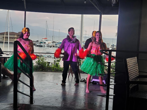 For the meal, it is assigned seating and our family was fortunately positioned near one of the side stages with a great view of Maalaea harbor and Haleakala in the background.