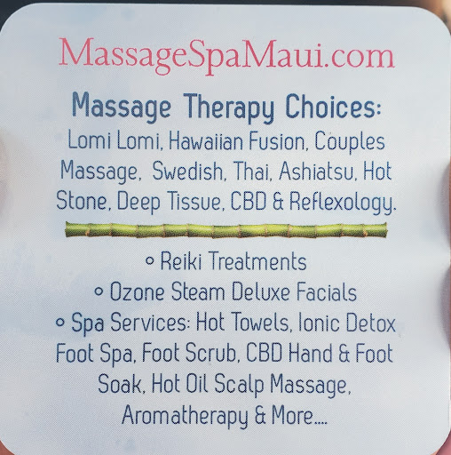 VERY pleased with Sara's work @ Massage Spa Maui. Super knowledgeable and experienced in all facets of wellness and therapeutic massage. My original intention was to get one treatment, prior to an adjacent Chiropractic treatment on site. I ended up going every week for a month or more now. Even had a 2-hr session today. Love the incorporation of hand & foot reflexology, combined with ice packs, hot towels, and CBD infused massage oil, which is optional. Hits all the key spots as well as asking me often, how the pressure is. Great skeletal and muscular intuitiveness. Cool, soothing music and environment, and offers some great products, but doesn't push them on you. Can't say enough good things. Price is right too. Treat yourself. Thank me...