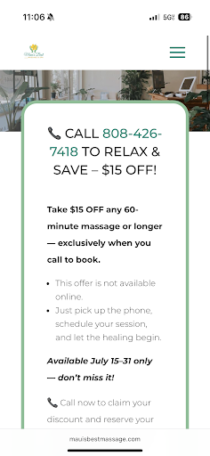 Read moreBEST massage experience I've ever had (I can see why they have that in their name)!! I booked a couples massage for my boyfriend birthday. They were responsive when I texted to inquire about a appointment which was about 4 days in advance. We were asked to get there 10-15 mins earlier but accidently went to another location with the same name. We started our massage 15 mins after from filling the questionnaire and chatting with them but we didn't miss any massage time and finished 15 mins later. We decided to upgrade to the Aloha package after being informed what it was and we are SO HAPPY we did. It was a very unique and relaxing experience. They used hot stones, lemongrass ginger essential oils and a Lomi stick. We also tried Kava tea then ended up going to the Haleakava bar later on too. The massage bed was also heated!! The therapist were very kind, sweet and had a healing energy. We had Dianna and Cassidy! This experience is well worth the time and obviously on a higher standard than the other places I checked out. Glad I went with my gut instinct and booked here. Def will...