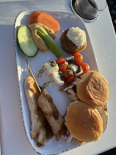Food was just alright. We were hungry, so we ate it. Definitely wasnât luxury, pretty cheap food IMO. I figured theyâd walk around passing them out, so I could grab more of 1 thing but they put 2 of each on your plate and thatâs it. Wish there was opportunity for more.