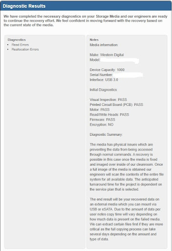 The stars were aligned, and I found Secure Data and a very caring rep by the name of Chris McMacken. Their website is filled with information and their client list is impressive. I filled out the online form and crossed my fingers. It was later in the day, so I figured that I’d get an email with some next step instructions. Wrong! I got a call that day from Chris who explained the process. I was in luck and they had an office close by, so I was able to drive and drop off the crashed drive and a replacement.