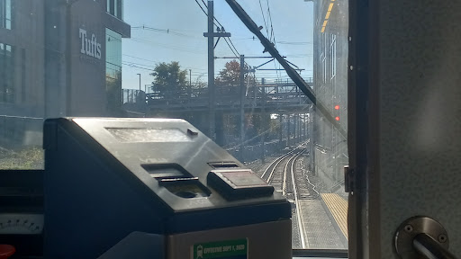 Pretty great station in my opinion. It has it's flaws and could've been better, but it's a welcome addition to the Green Line. Medford/Tufts has two tracks for Green Line trains. Either track (look for signs saying which train leaves next) serves southbound E branch Green Line trains towards Heath Street. For B, C, D branch trains to Boston College, Cleveland Circle and Riverside, take any train to Lechmere (for D-Riverside) or Government Center (for B-Boston Col. and C-Cleveland Cir.). Paying your fair at this station is confusing, you must go to a ticket kiosk, scan your Charlie Card, and press the button labeled "VALIDATE FARE", or scan your pass/use cash onboard at the farebox at the front of each car. A parking lot is not available at this station, but street parking is available. Exits for the station are at the southern end of the platform. Commuter Rail trains on the Lowell Line & Amtrak Downeaster trains pass by the station without stopping. Station is well lit and accessible by a pair...
