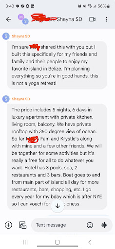 Pricing concerns: Based on my research, the prices charged were significantly higher than market rates for similar accommodations and services in the area. While businesses are entitled to set their own prices, I felt the markup was excessive without a clear explanation of added value. For a trip to Belize, if you book through the hotel directly: Blu Zen Caye Caulker Resort you will save yourself a 60% markup. Using a local class you'll be able to pay $250 for a class of 10 and support a local business, saving yourself $550 for a one person/room (full apartment cost = $375/day + $25 per a day for group yoga.)