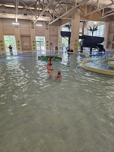 π«§ Very clean facility π¦ Body water slide Sat and Sun 12-5 πͺ£ Jungle Cove Big play structure with geysers, sprinklers and a tipping bucket and lion slide for little ones. π₯ Whirlpool π Large pool that goes from 3.6 ft up to 5ft max with basketball hoop π₯ Hot tub for ages 16 and over only. If no one is using it, press the green button β on the wall to start the jets. It runs for 15 min and Hannah loved the bubbles and lights. π Sit on floating crocodile π¦Ί Life vests to use π Life guards βΏ Handicap accessible π In the next room is diving boards and lap lanes π¬οΈ Inflatable obstacle course only on select days March 23-24 April 13-14, 27-28 for ages 8 and up. π¨ Underwater color changing lights *Not sure if this is the case all the time but they did not do safety breaks, so that was a plus, no interruptions. Looks like in the rules they do it 25 min to the hour at their discretion. Waterslide does not run until 12pm. π° Only 8.00 person, gives you full access to the day pass which includes gym, pool, track upstairs, and there is a room off near the entrance that has a rock climbing wall and fitness training equipment.