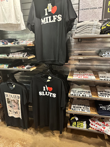 Read moreThis store has been around for a long time! Mature individuals only because of the merchandise. Large selection of t shirts not recommended for children or young teens. In the back are items of sexual nature such as toys, games, "greeting cards&gift wrap," "personal massagers," and so on. Gag gifts towards the front could be for kids but with parental guidance. Body jewelry, key chains, lighters, neon lights, and other fun items...