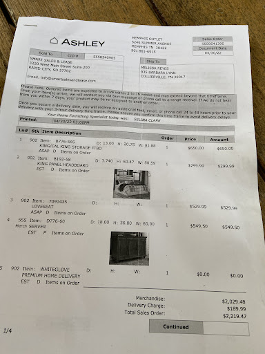 Read moreMy wife went to this location earlier in the day to find some furniture. She came across a couch/loveseat set that was missing a cushion, but it good shape and marked down for a good price. The store rep and at least one other worked with her to find the serial number so my wife could order the missing cushion if she decided she wanted the couch/loveseat combo. My wife came home and told me about the deal. We went back to the location to make the purchase, because they wouldn’t let my wife pay over the phone. When we arrived, we looked around for close to 40 minutes while the store rep prepared the purchase for us and researched the cost of some other items. When we went to check out, the bookshelf we wanted was “not in the inventory” and “couldn’t be added by anyone in the store”, so we “couldn’t buy it”. Next the store rep rang up the couch combo. After about 10 minutes, she told me that the couch had already been purchased and she couldn’t sell it to me. My wife asked where the manager was and she told my wife that he was gone, and hadn’t been in for a while. The store employees were unsure as to when the manager would come back. This was an overall ridiculous experience and I don’t recommend this store. The employee- Selina- who helped us was kind and seemed to want to take care of us, but was mostly unable too. She called us later and told us she had a brand new couch of the same design coming in at the end of the month and we could buy it for the same price as previously promised. We currently have no living room furniture (no where to sit) so we agreed. Prayerfully this works out for us…feel like we...