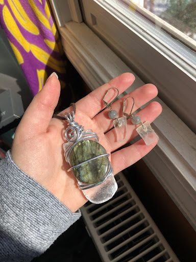 Read moreI met Nicki at a local market a couple years ago, and she whipped me up this selenite and labradorite necklace. I remember she said "Happy transformation!" as she handed it to me. It instantly became my favorite piece of jewelry and I get compliments whenever I wear it... it is a powerful piece. My dad reached out to Nicki later and secretly bought me a matching pair of earrings! Which I now love equally. Nicki and her selenite jewelry...