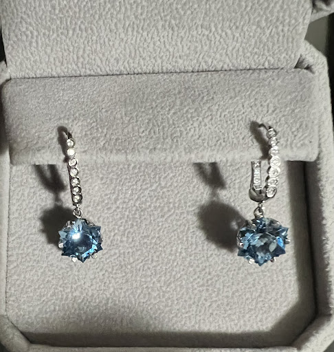 Read moreDave found a way to mount these Wobito snowflake-cut topaz and they’re beautiful. In the second picture, I brought him a star sapphire that I bought in Sri Lanka on a trip I went on from Dubai where I lived and I went with a colleague who tragically died at age 61 on a job in Vietnam. It looks beautiful, right? Well, it fell out of the setting and I took it back to Nelson’s. It turns out I was ripped off in Sri Lanka. The stone was glass-filled.