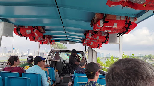 Read moreI’ve done the duck tours before in Chicago and LA and was expecting a similar experience in Miami but unfortunately that was not the case. To be clear, the tour guide gets a FIVE STAR review. I think his name was Chris or Maybe Jim, but in any case, he was personable, funny (but not in the annoying super corny kind of funny; like legit funny) and pointed out the interesting facts of the city as well. However, as I recall from my previous duck tours experiences, people choose this tour over the standard celebrity home viewing tour/sightseeing tour because of the fun aspect added it to it, hence the name “duck tours”. I recall getting these cute duck whistles which we got to blow at different moments of the tour. It added a fun element to an overall slow moving sightseeing tour that was not provided this time around. Speaking of slow moving, that kind of sums up my experience. Unlike last times when there were moments in which the captain sped up the boat allowing for a nice breeze and perhaps even a splash or two of water, this entire ride was at snails pace. Keep in mind that Miami’s summers can hit above 90 degrees and the sun is even stronger out on the water. I looked around and everyone was sweating buckets looking bored and waiting for the action to start. There was even a moment where the captain announced an intermission and turned on some lively music, but the speed of the boat continued at a slow pace that felt nothing more than bobbing with the oceans waves. We were barely moving. In any case, the tour was fine but if you advertise with the “duck tour” distinction that is supposed to differentiate you from the multitudes or other celebrity home viewing tours/sightseeing tours, then please have SOMETHING that alludes to that...