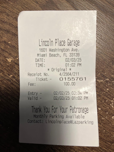 On January 23, 2025, I attended the annual winter mortgage conference at the Loews Hotel in Miami Beach and chose to park at the Lincoln Place Parking Garage. Arriving shortly before 10:00 AM, I noted their pricing sign, which indicated a $25 fee for a 10-hour stay. Throughout the day, I returned to my car a couple of times and observed that the pricing sign had been covered, but I didn’t think much of it at the time.