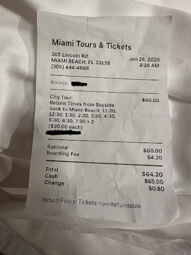 We booked online last night for just the Miami city tour this morning - it was supposed to be $29 and to pay by card. I'm so glad we booked online because it seems like if you book in person they upsell you like crazy. I saw people with "VIP" stickers - VIP means nothing. At best dishonest and at worst, predatory.