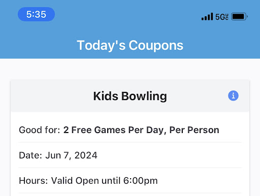 Showed up at 5:21 on a Friday for kids bowl free and the incompetent manager, Tom, and employee, Jack, would not honor Kids Bowl Free that on the coupons and app says are good today from open-6pm. They absolutely refused to honor the games without âthe button on the cash registerâ allowing it. They have effectively lost our business and we would have paid for shoes and 2 games for 2 adults every week for at least the rest of the summer.