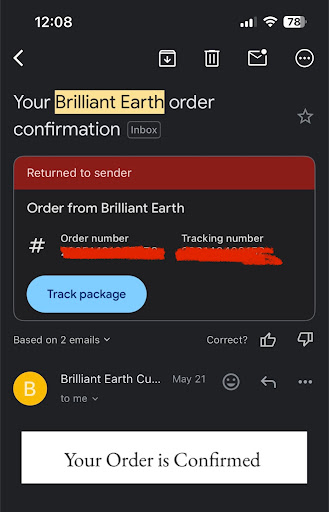 When I called Brilliant Earth to reroute the package, I was told it was "impossible" despite FedEx confirming otherwise.