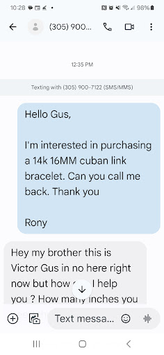Read moreGus villa jewelery was very easy to work with. I had Gus source a 18238 Rolex day date. Told him my budget. Came under just a little also. Put my deposit down and had the rest wired over, was going to wire all of the money but figured a situation could pop up with a “what if” since I never met the guy, or been to his store so once he confirmed he got the wire I sent the rest. He personally FaceTimed me and let me see it to make sure I was happy with it. Watch was shipped nice and fast. Box was nicely secured with it inside wrapping paper/tissue. And inside another bag, inside a protective box. Overall I am very happy, it isn’t my first jewelry purchase as this isn’t my first Rolex and I have bought and traded in 10K / 14Karat gold cuban link chains ranging from 100 grams all the way up to what I have now which is a 1068.3 gram Cuban link. But with that said up front I was nervous about spending the money online as all my purchases were set up on instagram and I drove to people to purchase items ( other shops ) . But Gus made it less nerve wracking and helped me with all my questions off instagram and personally answered the phone for me. Which eased my nervousness a lot. It won’t be my last Rolex or purchase from Gus and hopefully one day I’ll be able to drive down to his store to meet his awesome crew and himself personally to shake his hand as he totally changed my view on jewelery/ precious metals and I’ve been around a lot of precious metals with and buying / trading. Whether it be chains bracelets rings watches or bullion. Etc