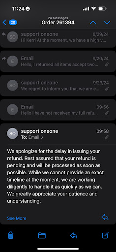 I finally was able to close the loop on a 4-month long saga with OneOne Swim! I ordered a few pieces in mid- December. They were shipped to me at the end of January (despite a promise of deliveries within 15 days). I immediately requested to return eligible items. It took 7 weeks, and constant follow up on my part, but I was finally refunded today only when I noted the default on their refund policy where I could be entitled to legal action. And it was the Social Manager that took care of this for me as customer service and billing kept stating they "needed to make sure it was with the appropriate department" which is apparently social media.
