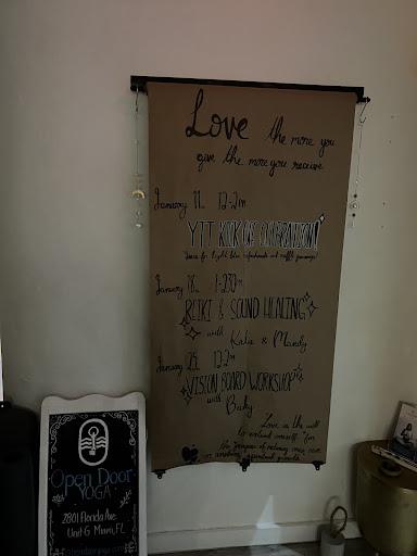 Read moreOpen Door is the hidden gem of yoga studios in Miami, literally tucked away in the middle of Coconut Grove. I started going there on ClassPass and soon changed to Open Door's Stu membership - one of the best deals in town, especially if you want to experience a lot of variety in one studio. If you want challenging, spicy, and sweaty, try Zoe. Bianca is so helpful with focusing on breath. Andrea will teach you from the inside out, visualizing how toxins are being cleansed. Natalie will find you where you are, and stealthily push you to hold difficult poses. Rosie will lead you spiritually and physically to places you don't think you can go. Anja's voice will mesmerize you, taking you on a glorious and technical ride, leaving you wondering where the time went. But what really keeps me coming back is the community of friends...