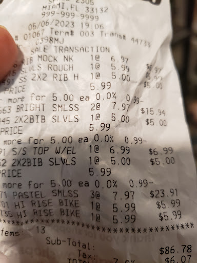 I visited the Rainbow store in the Bayside Marketplace, and overall, it's a discount clothing store with a focus on all women's clothing. They had a clearance section, which was great for finding deals. However, I found the store to be a bit claustrophobic, as it felt cramped and crowded.