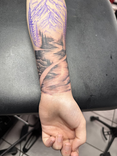 We’ve now been to Trademark Ink twice—first for a piercing with Dana, and most recently for a tattoo with Tyler—and both experiences have been phenomenal. Dana and Tyler are not only incredibly skilled and talented, but also warm, professional, and dedicated to making sure their clients feel informed and comfortable every step of the way. The quality of their work is outstanding. While I only have four tattoos and a few piercings other than my ears, I’ve accompanied my son and close friends countless times for their body art. Had we discovered Trademark Ink sooner, nearly all of those tattoos would have been done by Tyler, and piercings done by Dana. Without a doubt, their work is among the best I’ve ever seen or heard of. The shop itself is spotless and professional, yet still relaxed and welcoming. From the owners—Tyler and Dana—and their family members, to the staff and even other clients, everyone exudes friendliness and support. Just yesterday, Tyler gave my daughter her first tattoo: a beautiful quarter sleeve that he designed entirely from a few reference photos—no revisions needed. The piece is deeply meaningful, and my daughter, who is not easily impressed, was absolutely thrilled with the result. Tyler executed it with precision, care, and a gentle hand. Rather than calling it painful, my daughter described the experience as only mildly irritating—she even joked that, if she weren’t worried about moving, she could have taken a nap. If you’re looking for top-quality work in a welcoming and professional environment, don’t waste time searching elsewhere. Trademark Ink is the place to go for all your tattoo and piercing needs. You won’t find better hands to trust with...