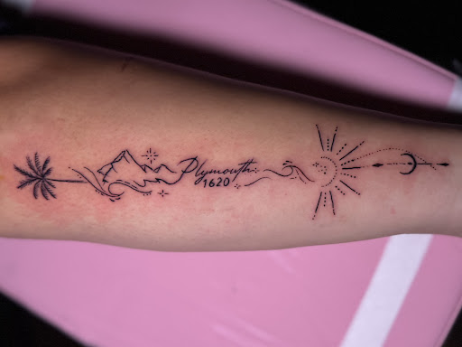 Read morePushin Ink was a cool studio. I loved the art on the walls. It was a very laid back atmosphere. The music choices were great. Middleborough is a cute little suburban town, but when you step inside the doors, it's like you're in a different place altogether. It's definitely worth checking out. Looking at the roster, there are some heavy hitting artists there.
