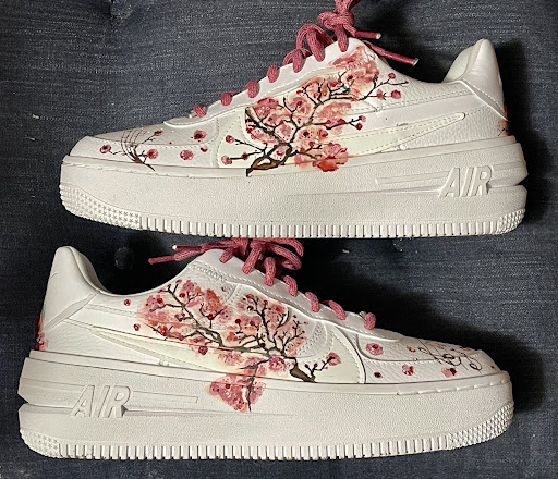 We dropped by to chat with Andrew at Revibed earlier this summer and brought a new pair of shiny white Nike airforce one platforms. My daughter wasn’t certain exactly what she wanted but Andrew spent a long time chatting with us and getting to know all her hobbies and things she loves.