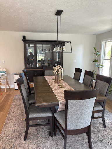 Read moreAbsolutely fantastic company to deal with, we are so happy with our dining set along with the expandable bench that can seat up to 12 ( 8-10 more comfortably) the workmanship is wonderful. it looks beautiful in our newly remodeled kitchen and dining area. Working with Kris and Lucy was great. They do not require as much of a deposit as many other furniture companies do, which is helpful and they allow you to make payments as the set is being built! Delivery was seem-less and we could not be more thrilled with our purchase. Their prices are very reasonable as well!!!! Thank you for a beautiful set!!!! The table top is Hickory with Chestnut stain, Chairs are...