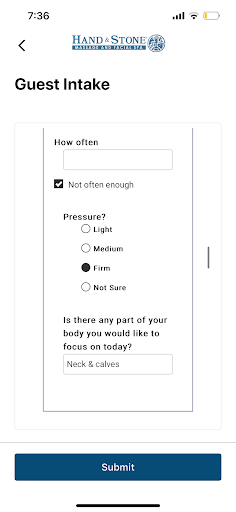 Read moreI made this appointment for 12/30/24 at 6:00 PM 3 days prior, through the app, which asked for my email address and telephone number to create an account. I did not receive a confirmation, text, call, or email prior to this appointment. When I checked in, the receptionist asked what services I wanted and I stated I would like the service and add-ons that I indicated when I reserved the appointment. The masseuse called me in at 6:05 PM and asked what kind of massage I would like, if I would like any add-ons, and if there were any problem areas I wanted to work on. To be clear, the masseuse was not confirming what I wrote days prior to the appointment on my intake form, but asking what I wanted as though they had not referenced my intake form at all. I said the same thing as before to the receptionist. The masseuse expressed that it would not be possible to include those add-ons. I was discouraged because now this conversation was digging into the time I was supposed to be receiving the massage. I feel that if they couldn’t accommodate the services I requested when the appointment was originally booked, I should have received a call to discuss this prior so it did not eat into the appointment time and maybe reschedule so I could get another masseuse or appointment time to better accommodate my original request. The appointment began at 6:10 PM. I indicated I wanted a firm massage on the intake form (photo attached for reference) but was given light pressure. The appointment ended at 6:50 so, the 50 minute massage I signed up for was only 40 minutes in total. I tried to pay the bill with cash afterwards but they did not have enough cash in the drawer to make proper change. This is a huge corporation, and understandably a franchise, but they should have enough cash in the drawer to make change appropriately for the amount of business they have scheduled. I then had to use a card I was not prepared to pay with. I handed the receptionist my debit card instead and then stated my concern that the business didn’t have enough cash on hand to break the bill I had. The receptionist asked if I wanted to pay with the card I put on file instead and I said that I could not, but to use the card I had just handed to them. I don’t understand why they even asked me that. Overall a...