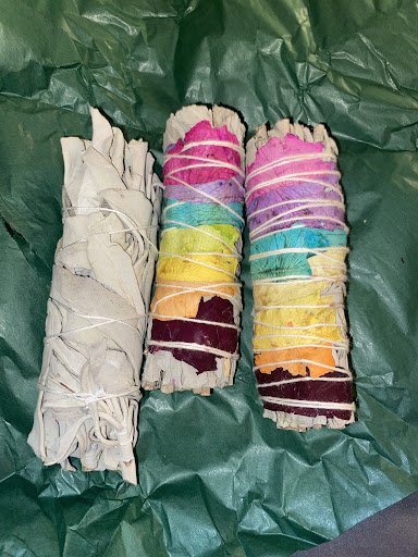 The shop was overpowered with the smell of various incense which should not have ever been burned in such a small space.