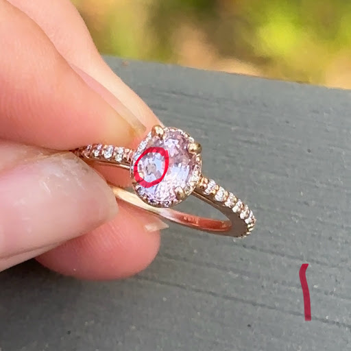 I get home and look at the new stone in natural light. There's a huge inclusion in the stone that was not discussed, but noticeable in natural light.