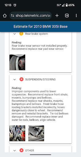Read moreI could have had several thousand dollars of unnecessary work done on my car here. They fixed my issue and I had them do absolute minimum that I thought I needed. They also suggested brakes but second opinion says I have up to 20k left on them. Never a squeal and I’m several thousand miles down the road. A 3 dollar 10 minute cleaning of vanos solenoids cleared a code which they wanted well over 2k to repair. I had them do brake sensors and tidy up a front inner wheel well which I ripped out. They did it without putting the reflector in which required me undoing work to replace. 20 dollar part. No call about a replacement. I’m curious if they even secured the sensors in the wheel well that I duct taped to the wall. Couldn’t spend 1 minute to wipe off duct tape residue on the wheel well trim. Diagnostics was totally worthless. A money bag. They never re-read the codes after replacing the brake sensors. The ‘cheap’ replacements I suggested cleared all lights and codes except for one 3 dollar fix that would have cost me thousands if they had their way. I’m not sure if these guys are real cons or lazy. Either way, they did a half assed job on my car and I got charged 1k for probably an hours work, a hundred in parts, and a useless money...