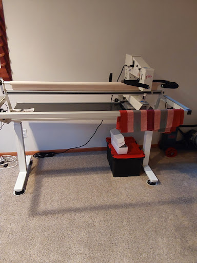 I have taken three classes, now. First, the class on using the machines so I may rent time on their. I purchased an APQS from Quilted Joy, I set it up myself, it was very easily done! Then I took her beginning classes. Angela's style of teaching works really well for my non-artistic brain and gives me confidence to try free-motion quilting as well as using paper pantographs.