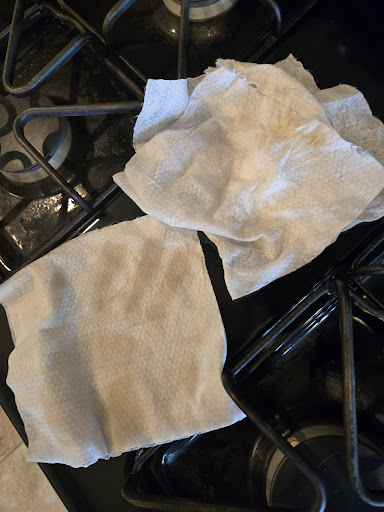 Several areas in the bathrooms were still dirty, including the sinks, shower glass, mirrors, and counters. Trash cans weren’t wiped down, nor were trash bags replaced, despite them being left out. Key areas like the front of the dishwasher and stove, cabinets, and windowsills were all ignored. They even used a Swiffer-type mop in the kitchen, which wasn’t effective.